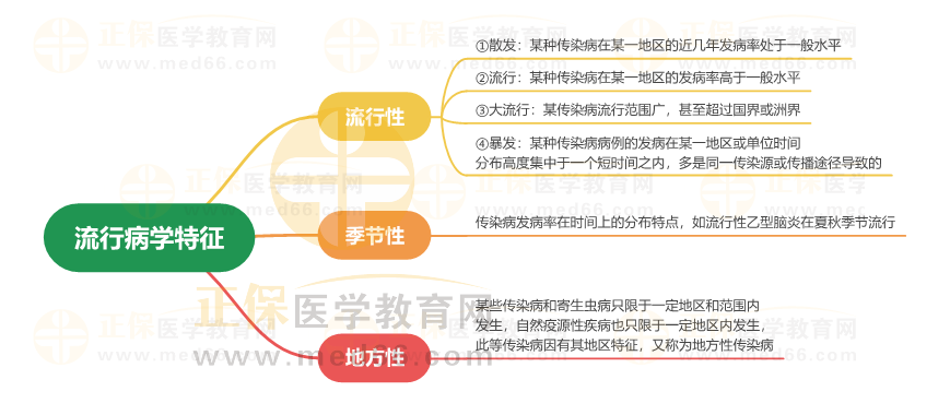 2024年中西醫(yī)執(zhí)業(yè)醫(yī)師傳染病學(xué)“流行病學(xué)特征”考點(diǎn)思維導(dǎo)圖