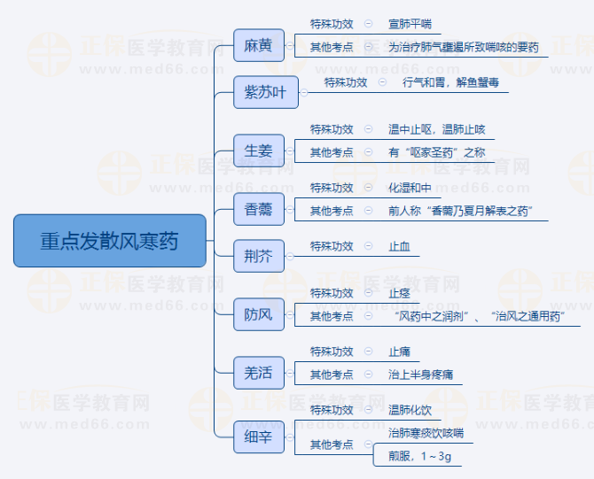 2023中西醫(yī)執(zhí)業(yè)醫(yī)師重要考點—中藥學(xué)中重點發(fā)散風(fēng)寒藥知識點思維導(dǎo)圖
