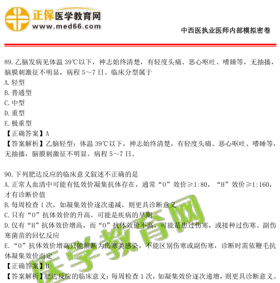 為了幫助2019年中西醫(yī)執(zhí)業(yè)醫(yī)師資格考試的考生及時(shí)的掌握命題規(guī)律,網(wǎng)校專業(yè)教學(xué)團(tuán)隊(duì)選取歷年具有代表性的試題組卷(綜合考慮了各科分值占比及難易度情況),對(duì)廣大考生進(jìn)行免費(fèi)實(shí)戰(zhàn)模考評(píng)測,以下是醫(yī)學(xué)教育網(wǎng)整理的“2019年中西醫(yī)執(zhí)業(yè)醫(yī)師??济芫淼?單元(86-90題)”希望可以幫助考生清楚自己的復(fù)習(xí)效果。