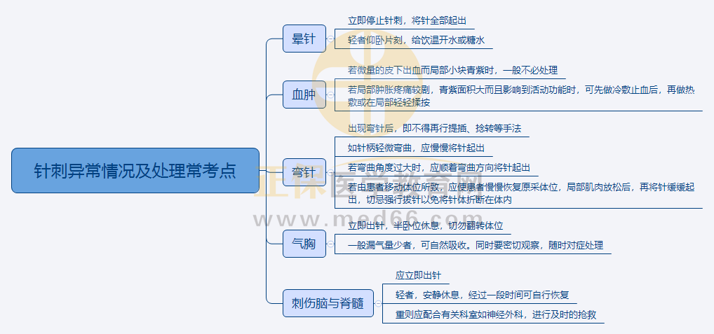 中西醫(yī)執(zhí)業(yè)醫(yī)師“針灸異常情況及處理??键c(diǎn)”思維導(dǎo)圖