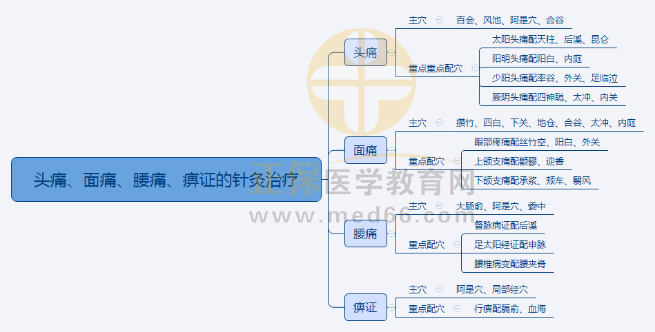 中西醫(yī)執(zhí)業(yè)針灸學“頭痛、面痛、腰痛、痹癥的針灸治療”思維導圖