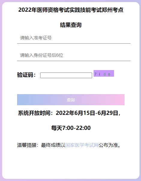 2022年鄭州考點(diǎn)中西醫(yī)執(zhí)業(yè)醫(yī)師考試實(shí)踐技能考試成績查詢?nèi)肟谝验_通