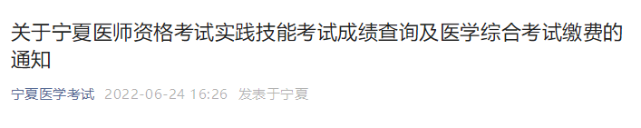 2022年寧夏考區(qū)中西醫(yī)執(zhí)業(yè)醫(yī)師資格實(shí)踐技能考試成績(jī)查詢(xún)系統(tǒng)已開(kāi)通