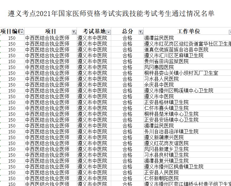 現(xiàn)將遵義考點(diǎn)2021年國家醫(yī)師資格考試實(shí)踐技能考試考生通過情況名單予以公布,完整名單信息詳見附表。