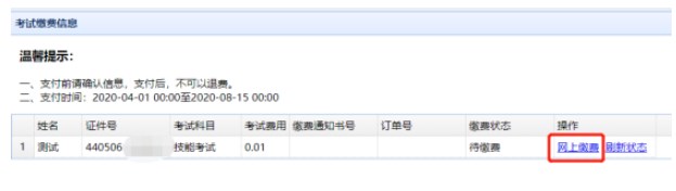 (https://jy.gdwsrc.net/),點(diǎn)擊“考試?yán)U費(fèi)信息”查看需繳費(fèi)信息。