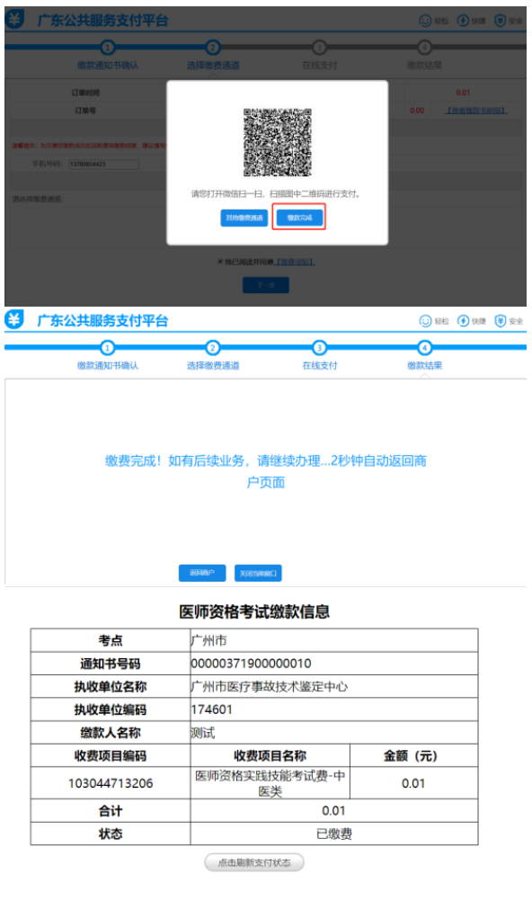 七、支付成功后,回到支付平臺(tái),點(diǎn)擊“繳款完成”,支付平臺(tái)自動(dòng)跳轉(zhuǎn)回系統(tǒng)的繳費(fèi)信息頁面。