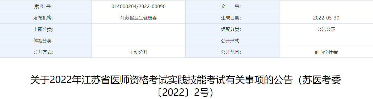 2022年江蘇省中西醫(yī)執(zhí)業(yè)醫(yī)師實(shí)踐技能考試有關(guān)事項(xiàng)的公告