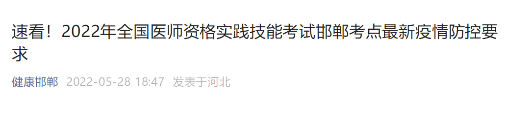2022年河北省邯鄲考點(diǎn)中西醫(yī)執(zhí)業(yè)醫(yī)師實(shí)踐技能考試疫情防控要求