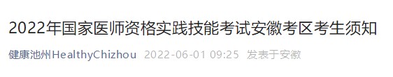 2022年安徽考區(qū)池州考點(diǎn)中西醫(yī)執(zhí)業(yè)醫(yī)師實(shí)踐技能考試考生須知