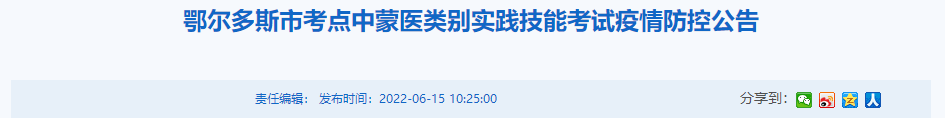 鄂爾多斯市考點(diǎn)2022年中蒙醫(yī)類別實(shí)踐技能考試疫情防控公告