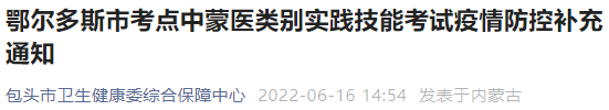 關于“包頭考點轉發(fā)鄂爾多斯市考點中蒙醫(yī)類別實踐技能考試疫情防控補充通知”相關內容,相信參加2022年中西醫(yī)執(zhí)業(yè)醫(yī)師考試的考生都在關注,為方便大家了解,在此醫(yī)學教育網小編為大家整理如下內容: