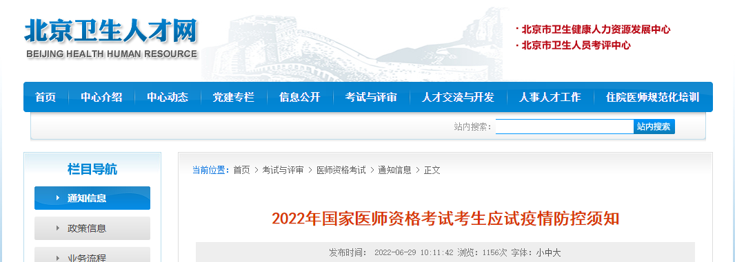 北京考區(qū)2022年國家中西醫(yī)執(zhí)業(yè)醫(yī)師資格考試考生應試疫情防控須知