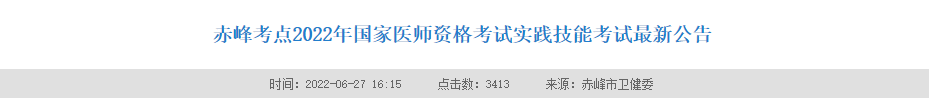 2022年國家中西醫(yī)執(zhí)業(yè)醫(yī)師資格實踐技能考試赤峰考點考試須知公告