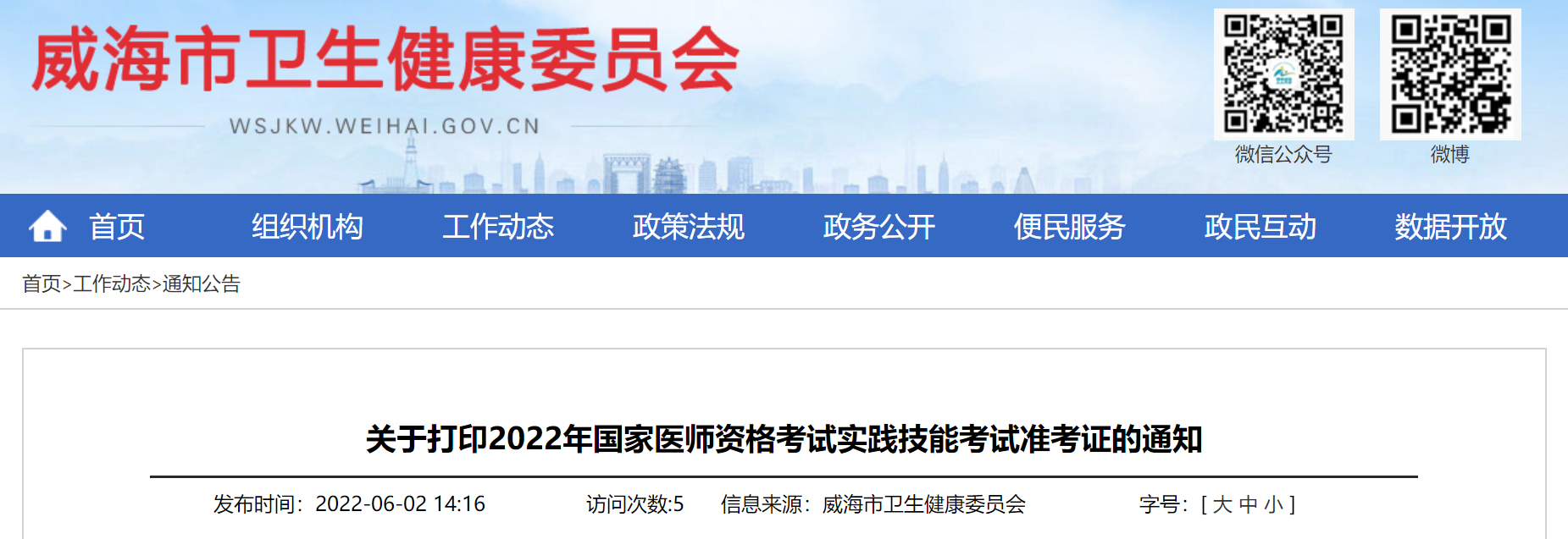 山東省威海考點關(guān)于打印2022年中西醫(yī)執(zhí)業(yè)醫(yī)師實踐技能考試準考證的通知