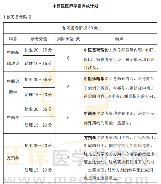 7日備戰(zhàn)提升計(jì)劃/全年學(xué)習(xí)計(jì)劃:中西醫(yī)醫(yī)師類別;