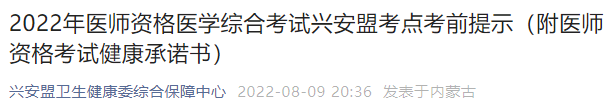2022年中西醫(yī)執(zhí)業(yè)醫(yī)師醫(yī)學綜合考試興安盟考點考前提示(附醫(yī)師資格考試健康承諾書)