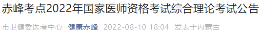 赤峰考點2022年中西醫(yī)執(zhí)業(yè)醫(yī)師資格考試綜合理論考試公告