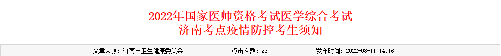 2022年中西醫(yī)執(zhí)業(yè)醫(yī)師資格考試醫(yī)學(xué)綜合考試濟南考點疫情防控考生須知