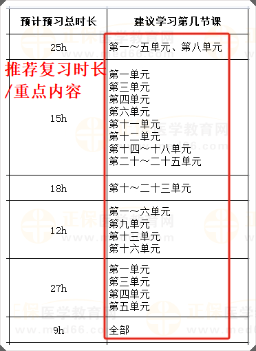 2、科目預(yù)計復(fù)習(xí)時長以及科目重點(diǎn)圈畫