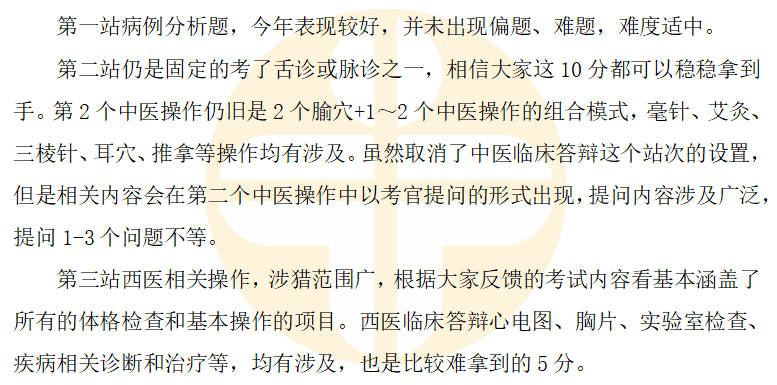 今年的實踐技能考試仍舊采用三站式考試,第二站取消中醫(yī)臨床答辯。