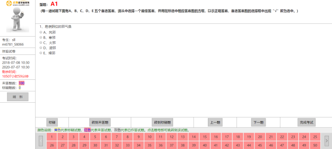 第六步:點(diǎn)擊“開始考試”即可進(jìn)入答題界面。
