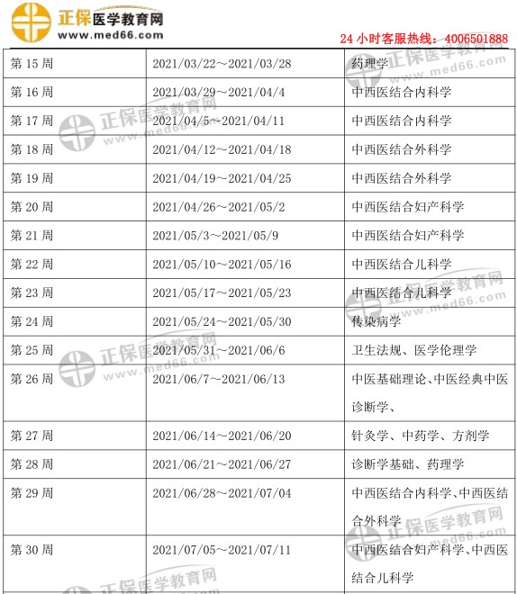 各科目及單元復(fù)習(xí)計(jì)劃時(shí)間表——2021年中西醫(yī)執(zhí)業(yè)醫(yī)師必備