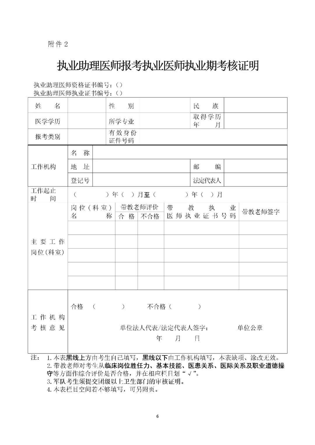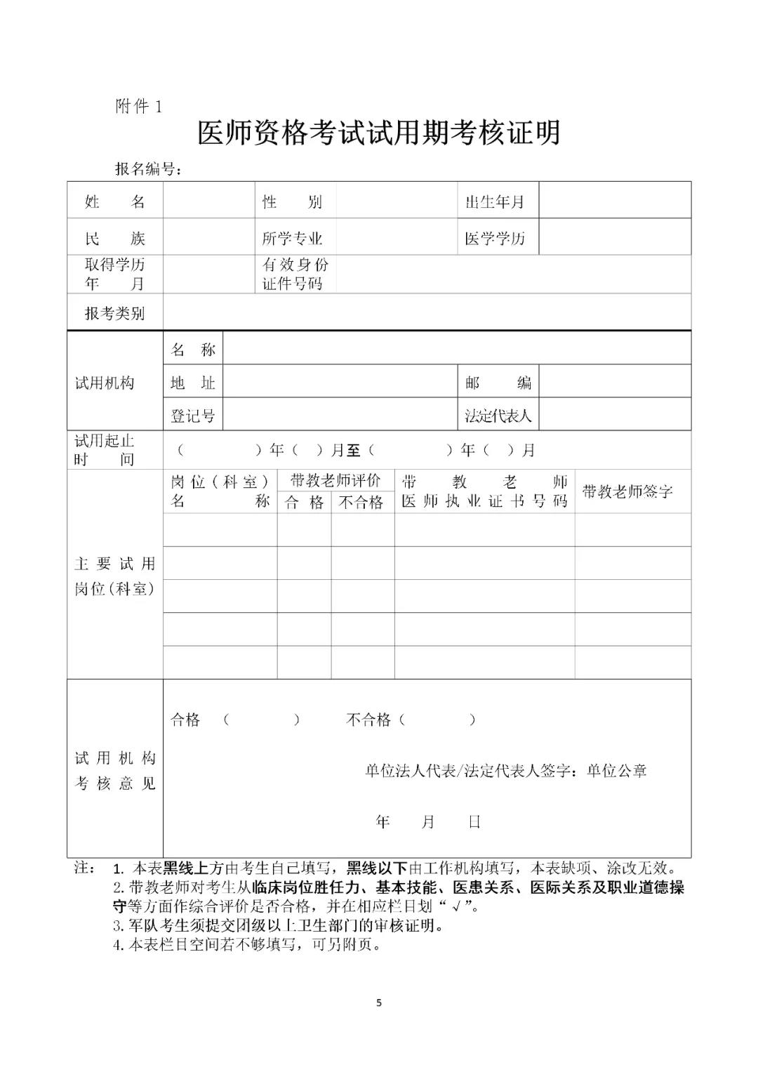 4、《醫(yī)師資格考試試用期考核證明》(附件1)。