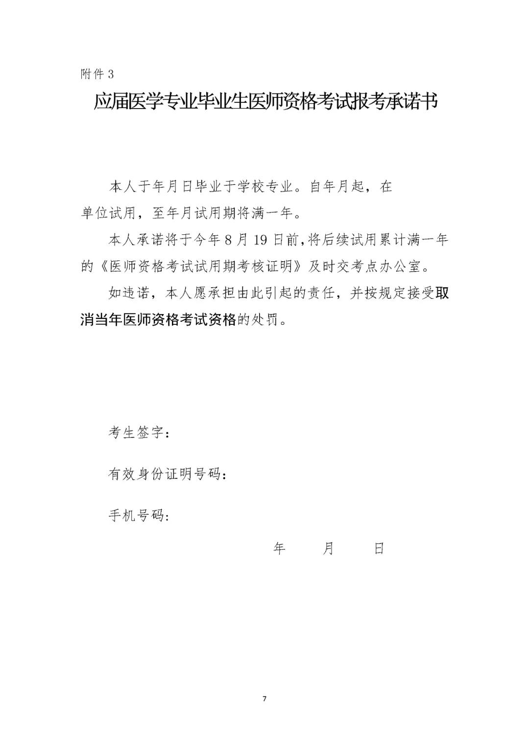 6、應(yīng)屆畢業(yè)研究生須提供學(xué)生證復(fù)印件、學(xué)校研究生處出具的證明原件并簽訂《應(yīng)屆醫(yī)學(xué)專(zhuān)業(yè)畢業(yè)生醫(yī)師資格考試報(bào)考承諾書(shū)》(附件3)。