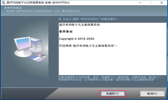 打開您下載且已經(jīng)解壓的目錄文件,雙擊“醫(yī)療機構(gòu)電子化注冊信息系統(tǒng)-機構(gòu)版.exe”程序會自動運行,并彈出窗口,如圖所示:
