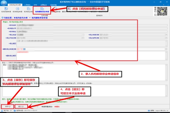 注:注冊信息填寫完成后,請保存并提交,否則衛(wèi)生計生委看不到注冊申請信息。