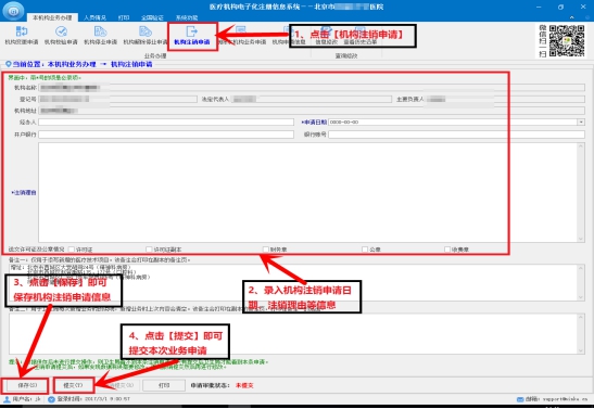 注:本機構(gòu)已經(jīng)提交機構(gòu)注銷申請,才能打印變更申請書。