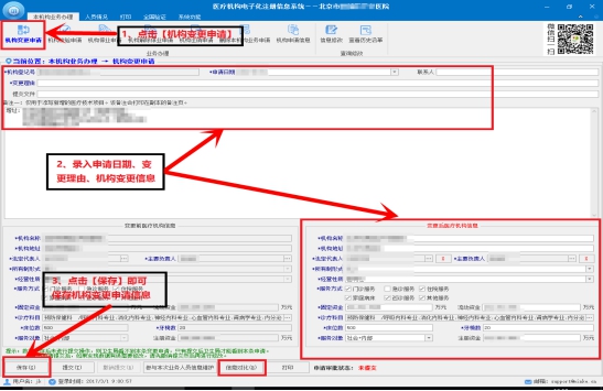 注:變更信息填寫完成后,請保存并提交,否則衛(wèi)生計生委看不到變更申請信息。