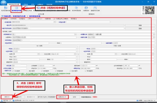 注:校驗信息填寫完成后,請保存并提交,否則衛(wèi)生計生委看不到校驗申請信息。