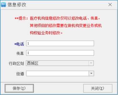 l 單擊【信息修改】按鈕,進(jìn)入“信息修改”窗口。在信息修改窗口中,可以修改電話、傳真、行政區(qū)劃等信息。如圖所示: