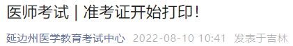 吉林考區(qū)延邊州考點(diǎn)2022年中西醫(yī)執(zhí)業(yè)醫(yī)師醫(yī)學(xué)綜合考試準(zhǔn)考證開(kāi)始打印