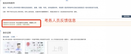 考生可根據(jù)考區(qū)要求的時(shí)間或通知,登陸上傳頁面查看醫(yī)師資格考試報(bào)名材料審核反饋意見,并根據(jù)反饋意見補(bǔ)充完善相關(guān)材料。