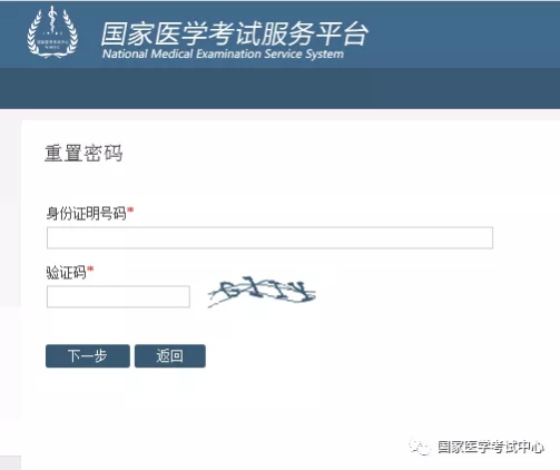 首先,打開國家醫(yī)學考試生生服務系統(tǒng),點擊下方的忘記密碼按鈕,彈出重置密碼界面。