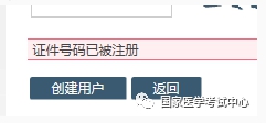1、在國家醫(yī)學(xué)考試考生服務(wù)系統(tǒng)注冊時,發(fā)現(xiàn)證件號碼被注冊時。
