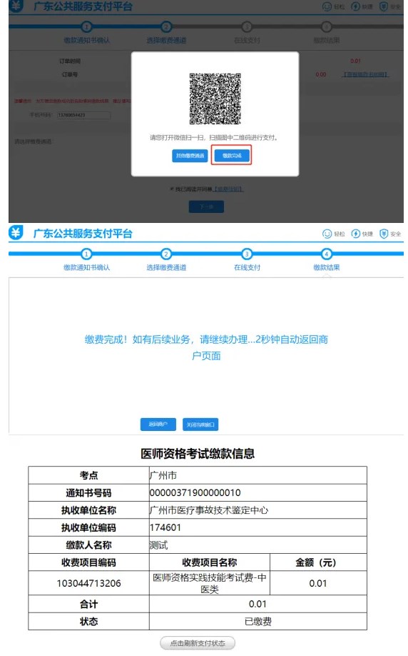 網(wǎng)上繳費(fèi)。請(qǐng)考生使用網(wǎng)頁(yè)瀏覽器登錄“醫(yī)師資格考試廣東考區(qū)報(bào)名暨資格審核管理平臺(tái)”(https://jy.gdwsrc.net/),按照操作指引繳納考試報(bào)名費(fèi)。