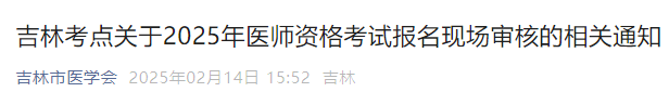 吉林考點2025年醫(yī)師資格考試報名資格審核方式為本人現(xiàn)場審核,現(xiàn)將有關事項通知如下: