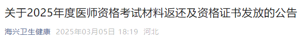 2025年河北海興開(kāi)發(fā)區(qū)中西醫(yī)助理醫(yī)師報(bào)名材料開(kāi)始登記返還