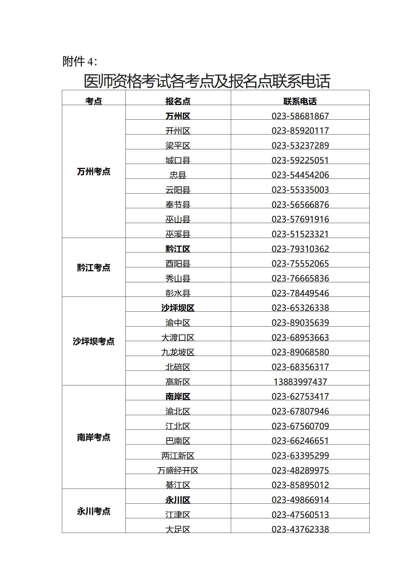 2023年醫(yī)師資格考試重慶考區(qū)各考點(diǎn)及報(bào)名點(diǎn)聯(lián)系電話