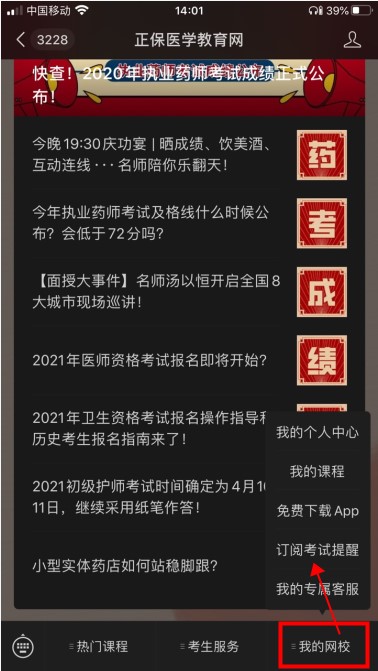 第二步、選擇「我的網(wǎng)?!?「訂閱考試提醒」