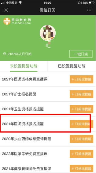 第三步、點(diǎn)擊"2021年醫(yī)師資格考試報名"提醒功能