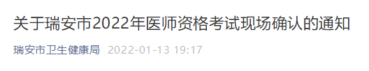 浙江考區(qū)瑞安市2022年中西醫(yī)助理醫(yī)師資格考試現(xiàn)場確認(rèn)工作通知