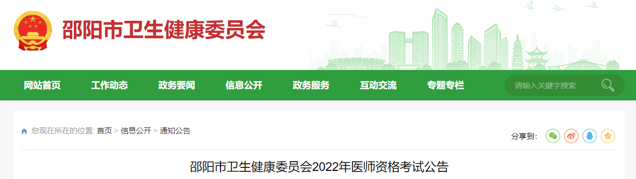 邵陽(yáng)市衛(wèi)生健康委員會(huì)2022年醫(yī)師資格考試公告