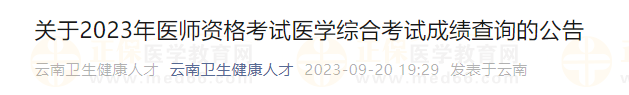 關(guān)于2023年醫(yī)師資格考試醫(yī)學(xué)綜合考試成績查詢的公告
