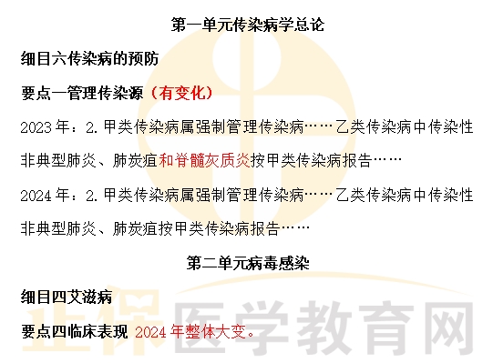 2024年中西醫(yī)執(zhí)業(yè)助理醫(yī)師考試《傳染病學》科目教材變動