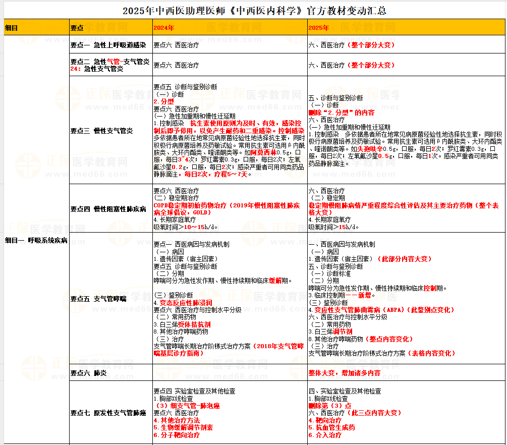 2025年國家中西醫(yī)助理醫(yī)師資格考試《中西醫(yī)內(nèi)科學(xué)》官方教材已發(fā)布,醫(yī)學(xué)教育網(wǎng)專業(yè)老師為大家梳理變動內(nèi)容如下: