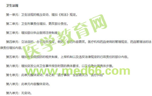 第一單元:整體變動,內(nèi)容更改為“醫(yī)學(xué)倫理學(xué)與醫(yī)學(xué)目的、醫(yī)學(xué)模式”。